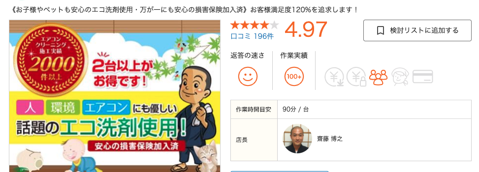 川崎市にある業者中、人気ランキング第一位は「齋藤 博之」さんでした。